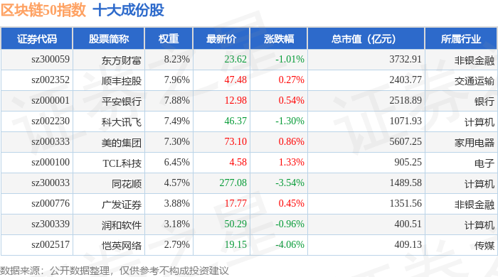 7月14日区块链50(399286)指数跌077%成份股恒宝股