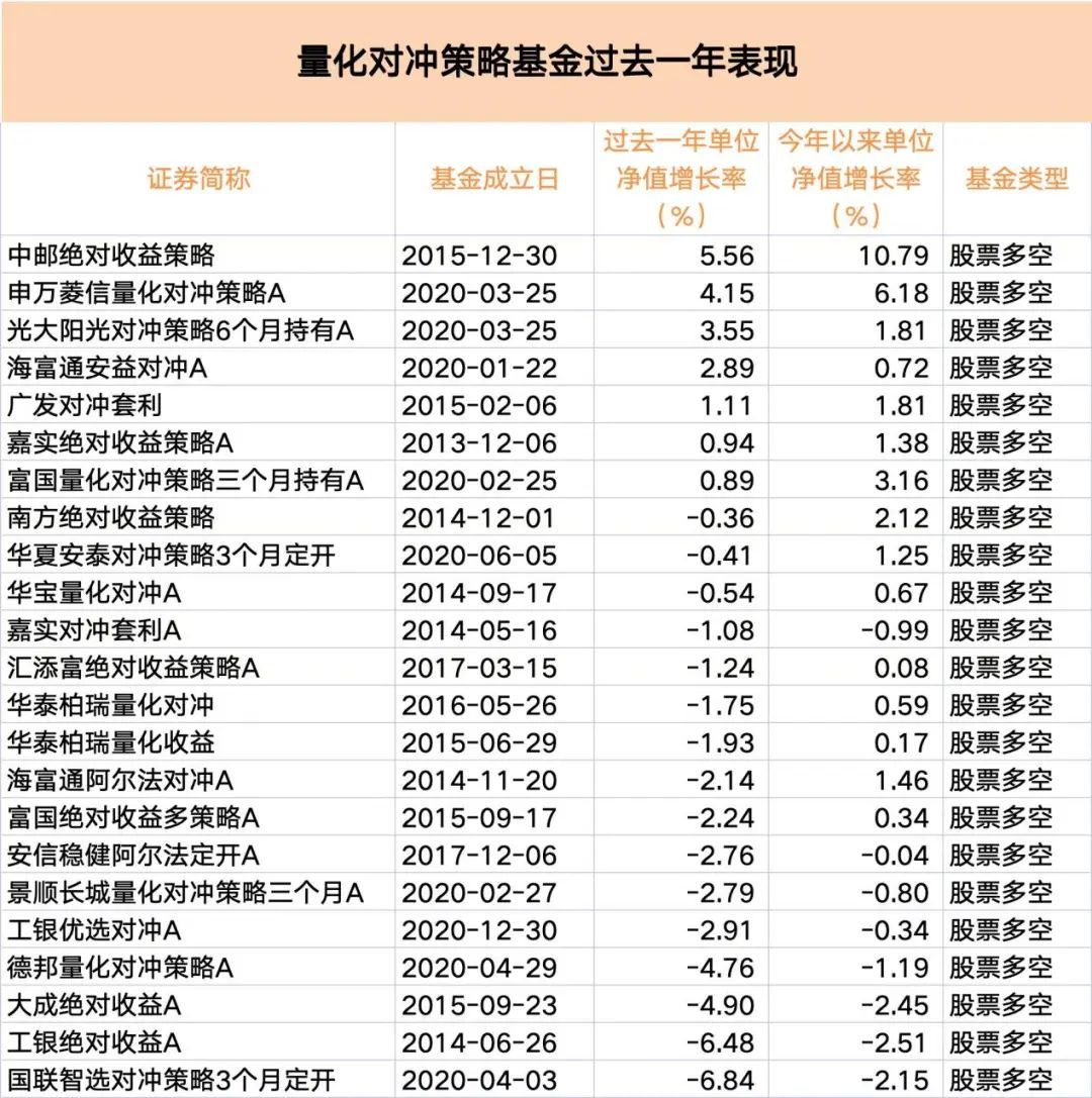 强势行情下,权益基金业绩全面回暖,超过99%的主动权益基金取得正收益。不过,号称“牛熊市都能赚钱”的量化对冲策略基金过去一年表现却不尽如人意。