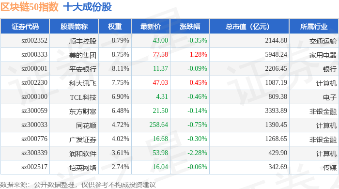 5月19日区块链50(399286)指数跌006%成份股汉威科