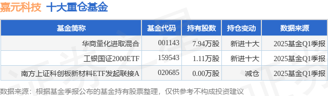 5月27日嘉元科技涨521%华商量化进取混合基金重仓
