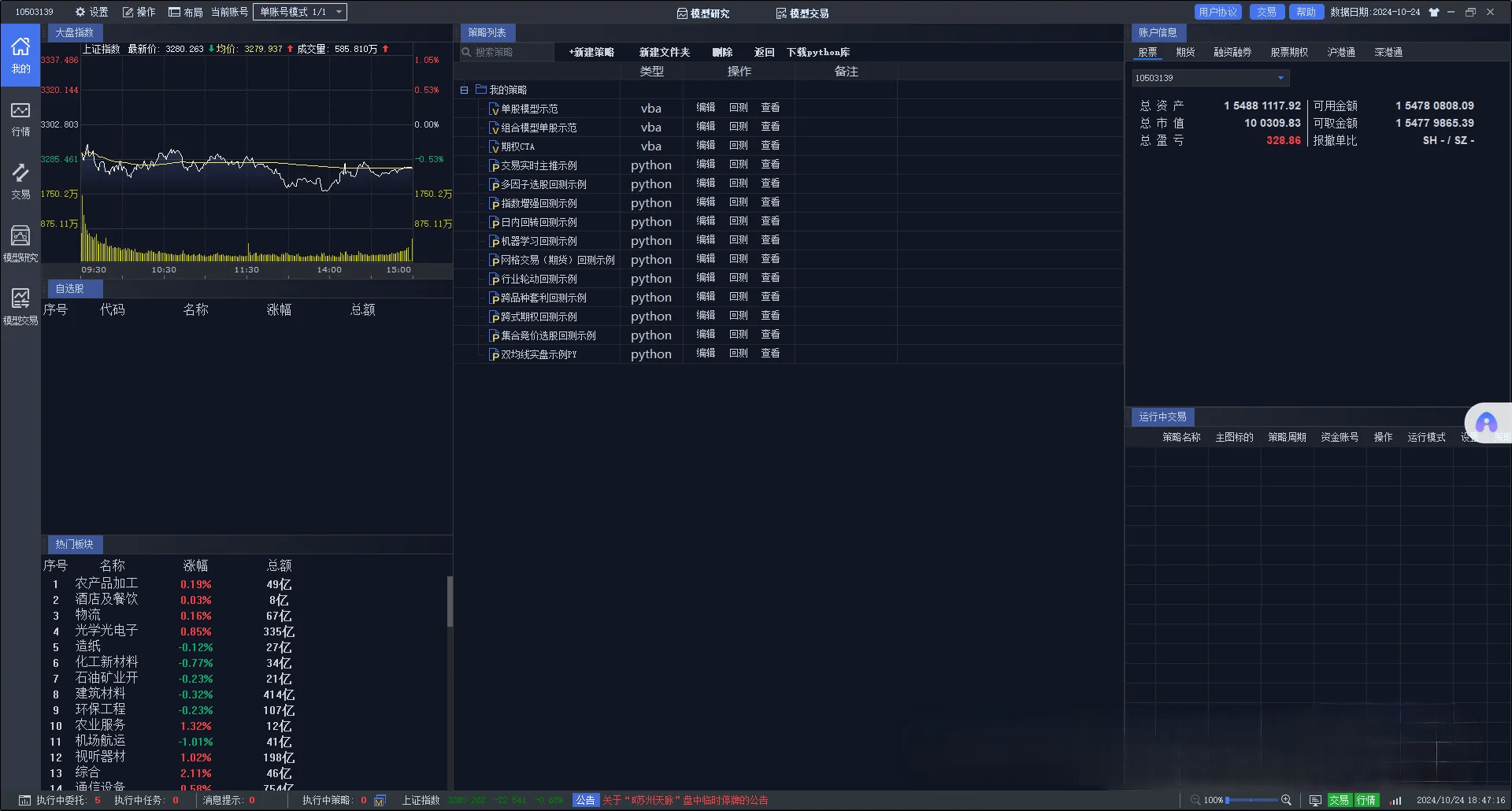 功能全面:支持自动化交易、策略回测、风险控制和数据处理等功能,自带丰富的交易函数库和策略交易工具,如期权组合交易、alpha 对冲套利等。
