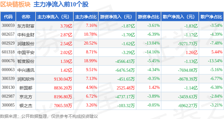 从资金流向上来看,当日区块链板块主力资金净流出1.12亿元,游资资金净流出15.15亿元,散户资金净流入16.27亿元。区块链板块个股资金流向见下表: