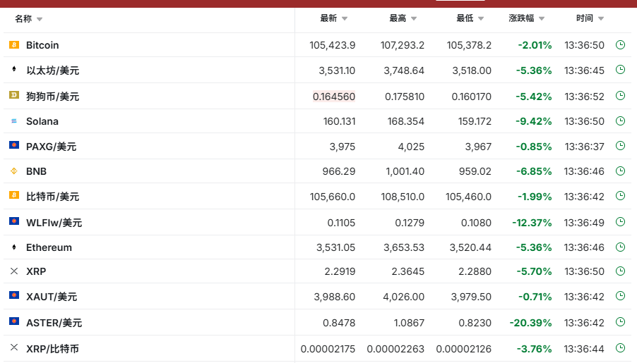 加密货币普跌,比特币下跌超2%至10.42万美元,以太坊跌超3%至3480美元。