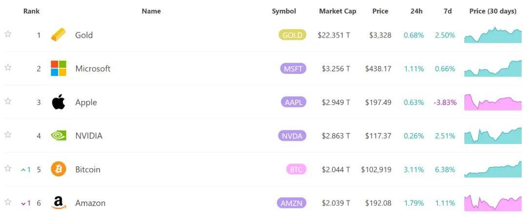 2025年5月初,全球金融市场风起云涌,比特币(Bitcoin,BTC)再次成为万众瞩目的焦点。在多重利好消息的刺激下,比特币价格势如破竹,不仅时隔三个月再度冲上10万美元大关,其总市值也成功重返2兆美元上方,更一举超越全球电商巨头亚马逊(Amazon),跃升为全球第五大资产。