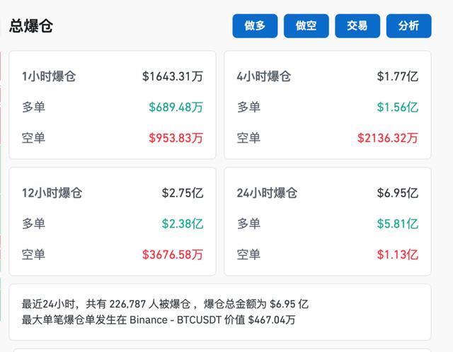11月26日,加密货币市场持续走低。比特币价格跌至92333美元,跌幅为5.87%;以太坊则跌至3300美元附近,跌幅4.1%。狗狗币也大幅下跌,跌幅达到11%,报价0.376530美元。Coinglass数据显示,过去24小时内,全网爆仓人数近23万,爆仓总额接近7亿美元。