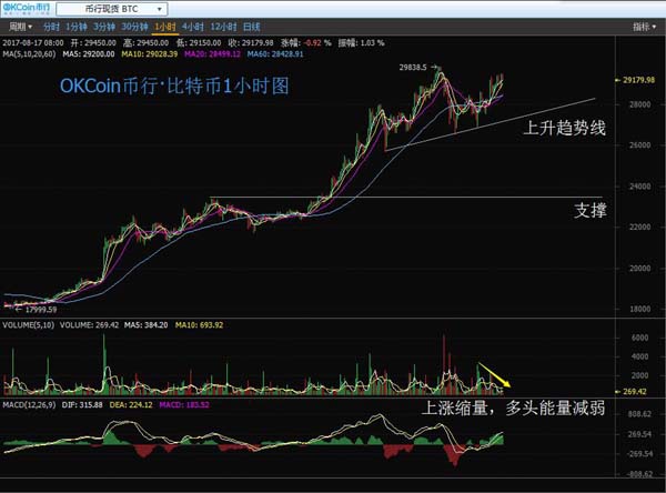 国际在线消息:根据国内知名的数字资产交易平台OKCoin币行的数据显示,比特币昨天(8月16日)价格整体呈震荡攀升走势运行,在亚市下午2点时段最低调整至26881一线低位后止跌企稳,随后震荡上行,最终收于日内高位附近,报收于28950。截止今日发稿前,价格继续向上攀升,最新交投于29200附近。